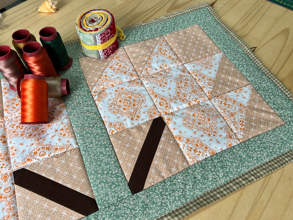 Este bloco é perfeito para quem ama explorar combinações de cores e aproveitar cada pedacinho de tecido. Ele pode ser usado sozinho, repetido para formar caminhos de mesa, tapetes, painéis ou até um quilt inteiro inspirado no outono.