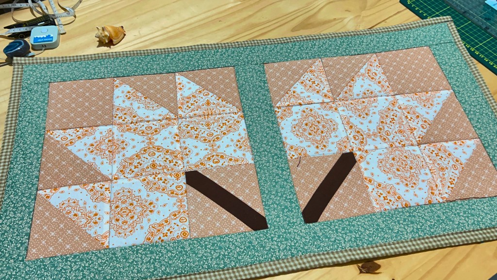Depois de costurados, cortados e abertos, reserve seus HSTs já passados para a montagem do bloco.